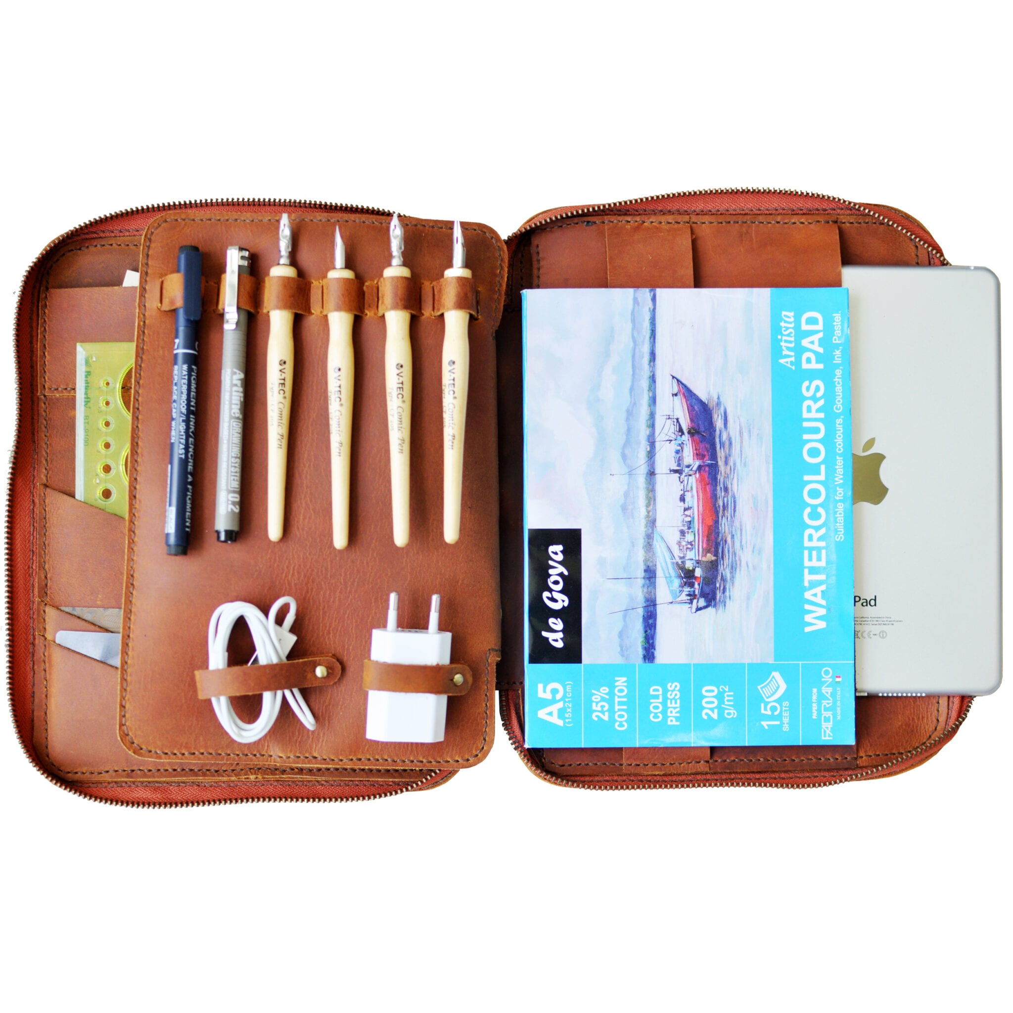 Designed for creators, designers, architects, and sketchers, the Nomad Organizer for Mini iPad is the ultimate compact solution for organizing your essential tools. Its sleek and handy design makes it easy to carry everything you need for your creative endeavors or everyday use.