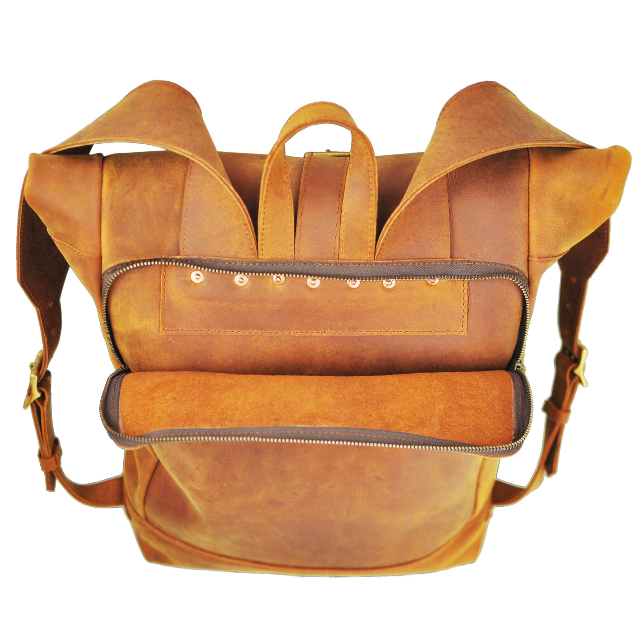 Experience the timeless beauty of leather with the Nomad Leather Roll Top Backpack. As it ages, its patina evolves, enhancing its natural luster and individual character—a testament to quality craftsmanship and enduring style.